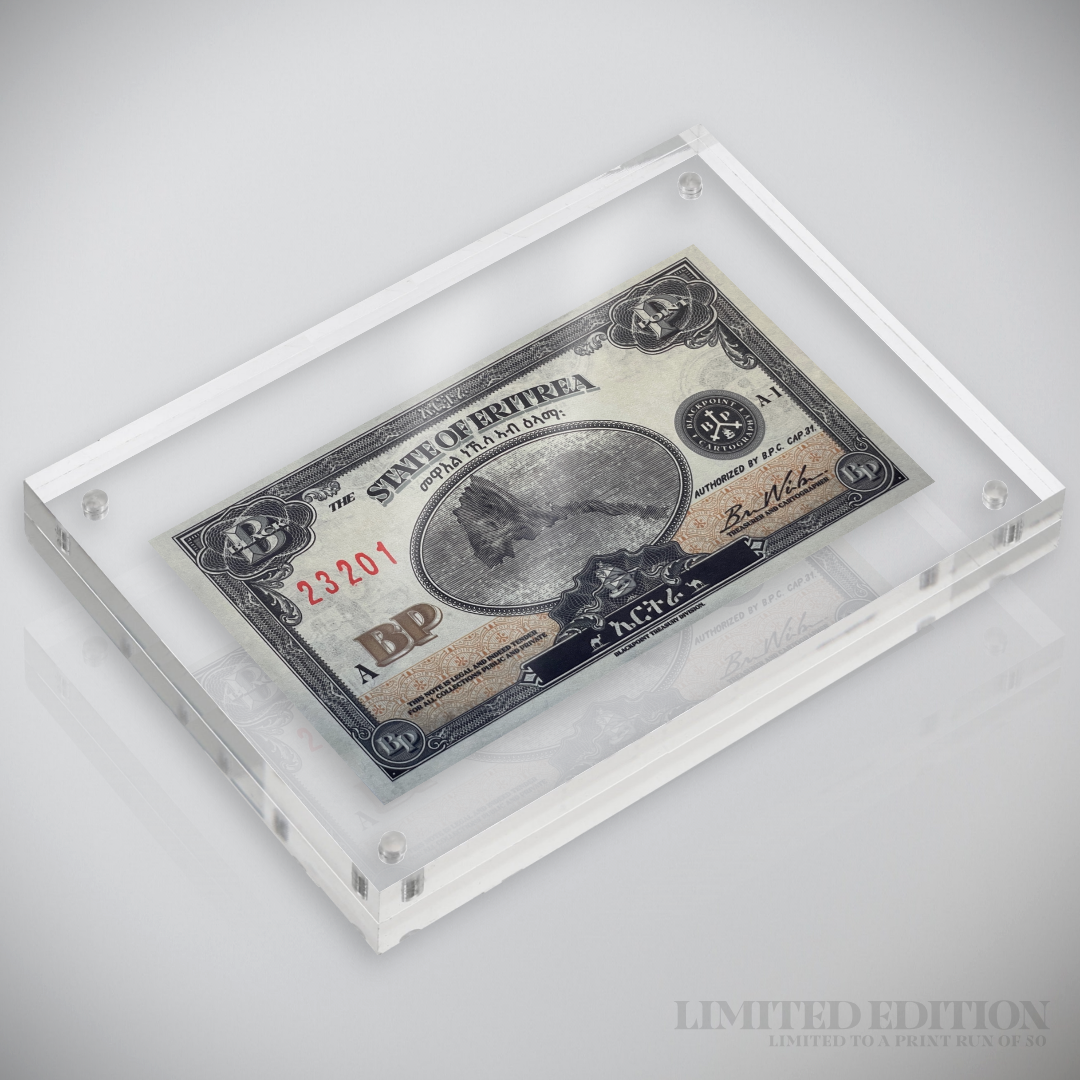 The Blackpoint Treasury highlights a Limited Edition collection of countries represented in the style of vintage banknotes. Adhering to an iconic paper currency layout with a cartographic touch, each note is presented on specialty cotton and linen blend paper.